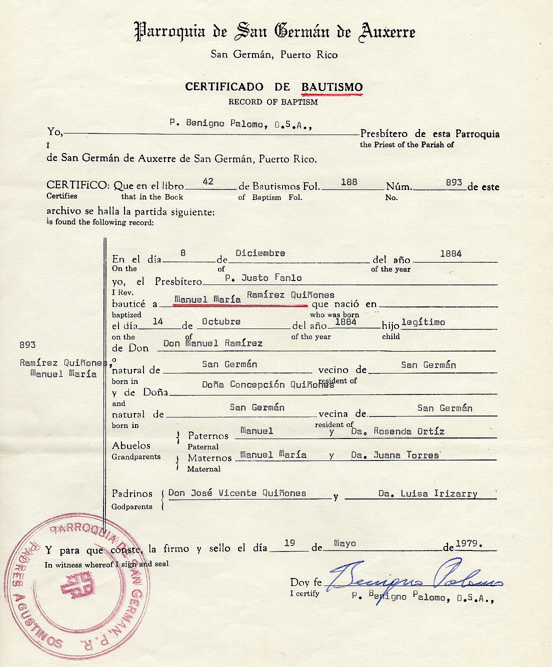 - "Manuel", "Maria", "Quinones", "Ramirez", birth, certificate